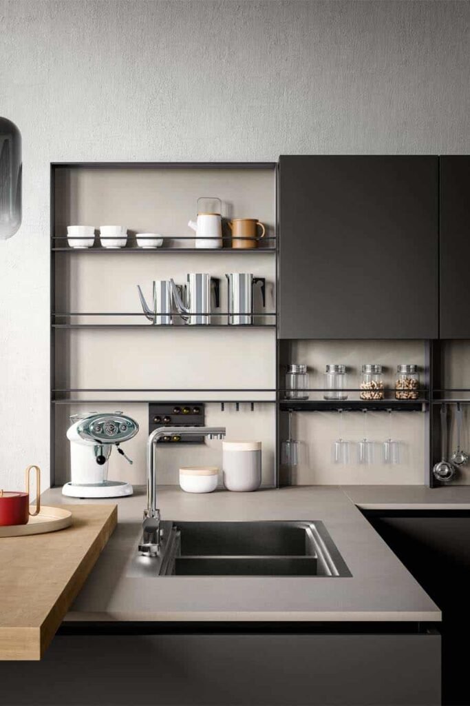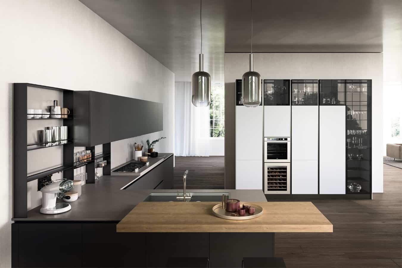 Les traits forts et énergiques de la cuisine Kappa dessinent des espaces modernes et raffinés où se mesurer avec la nourriture et l’hospitalité, interprétant le besoin d’espaces de plus en plus articulés et représentatifs adaptés aux nouveaux styles de vie contemporains. Un choix attentif et limité de finitions pour une gamme de modèles complète pouvant être enrichie de modules équipés, de solutions fonctionnelles et de larges espaces de rangement, en mesure d’offrir une harmonie absolue entre les espaces et l’émotivité.
