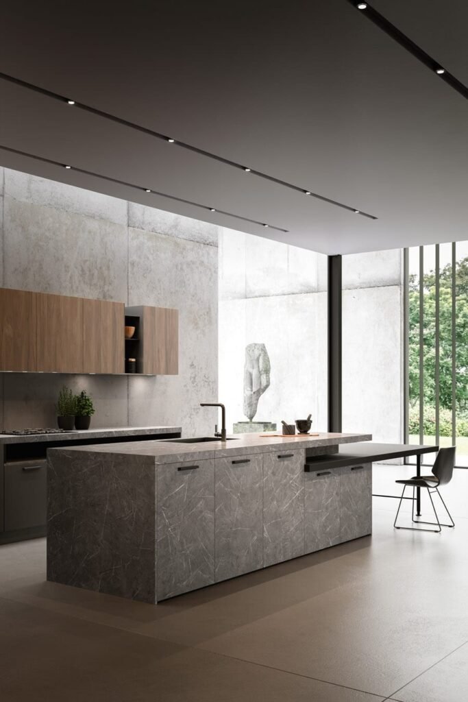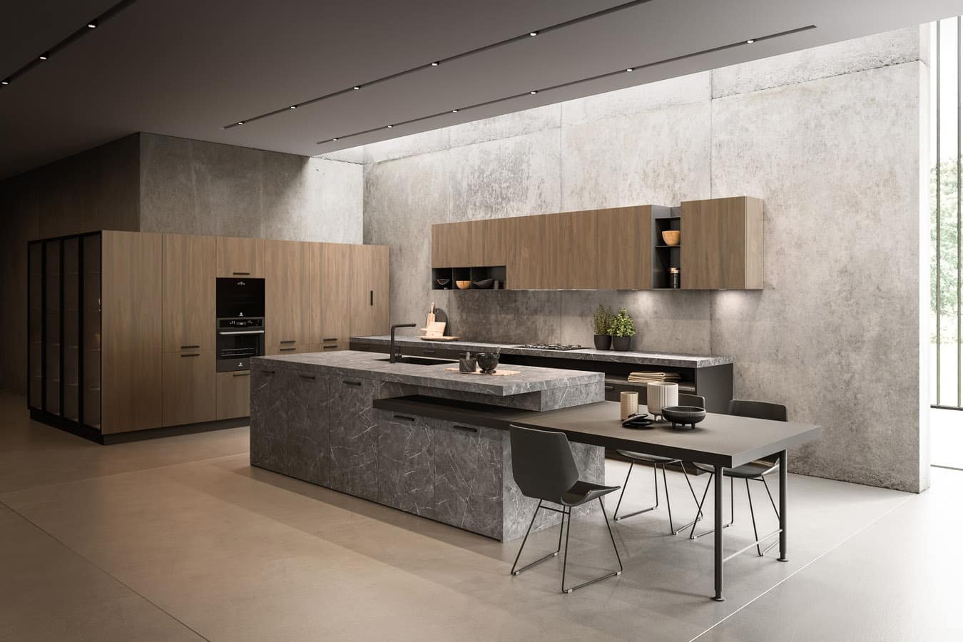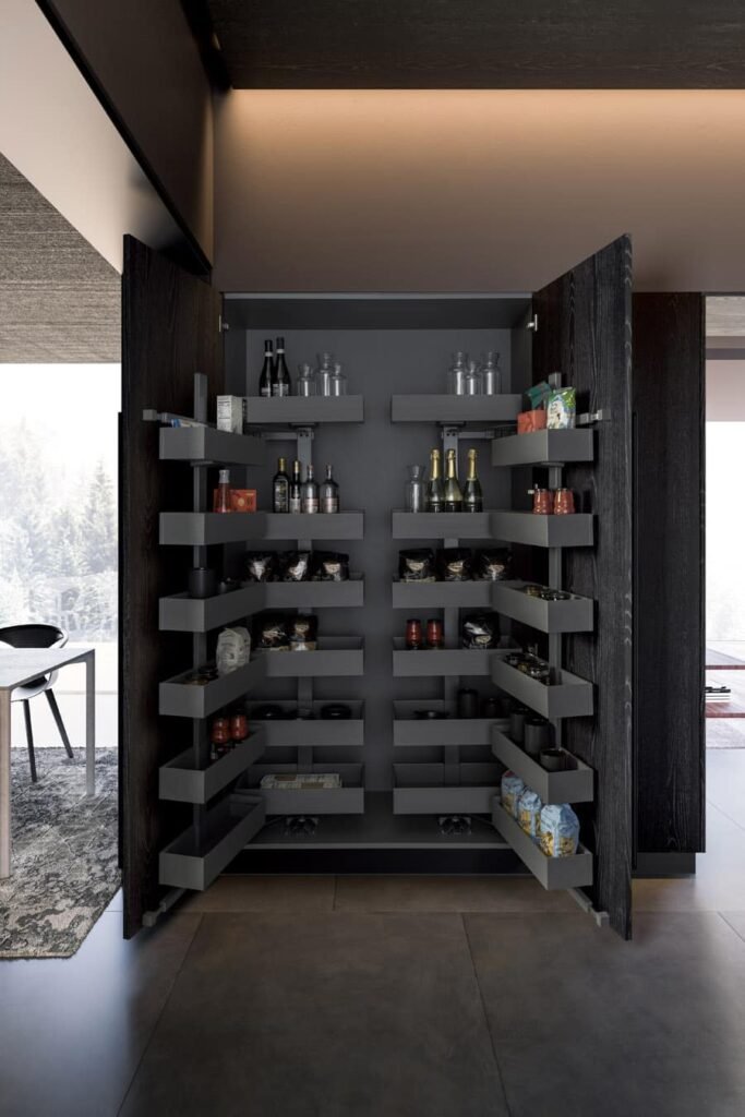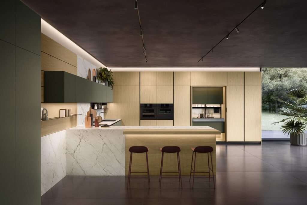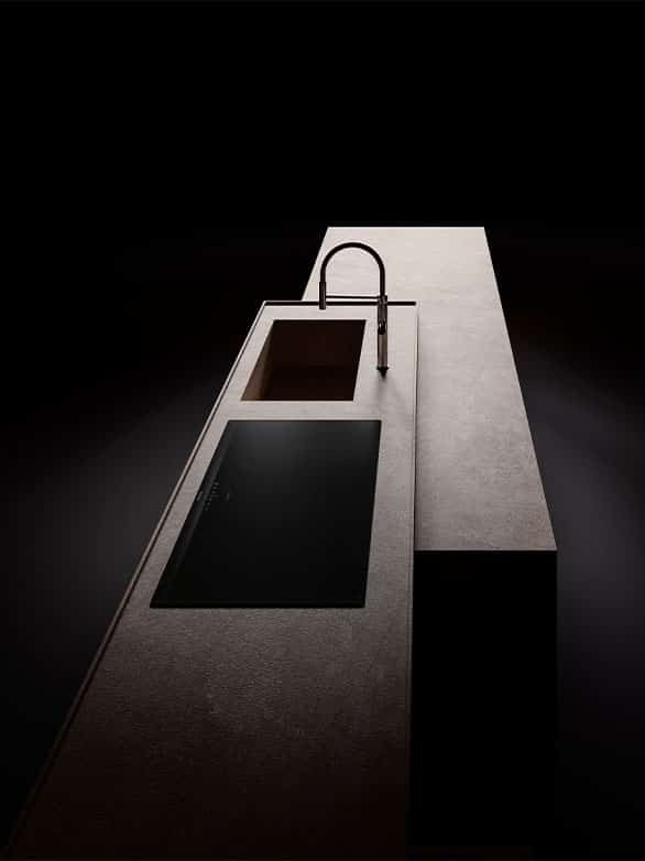 L’utilisation de matériaux innovants permet d’inventer de nouvelles formes et de nouveaux concepts pour aboutir à une alchimie parfaite entre innovation et tradition. La porte solide, de 22 mm d’épaisseur, donne vie à un espace harmonieux au sein duquel se développent des structures fortes et compactes, qui renferment des fonctions, des rangements et des espaces parfaitement agencés.