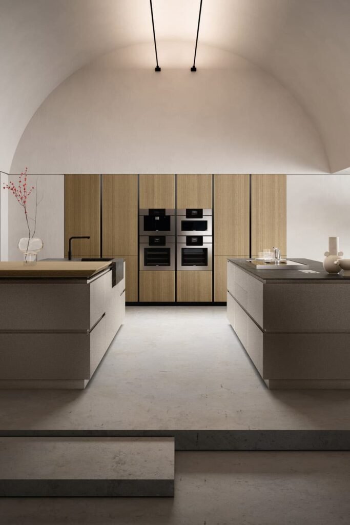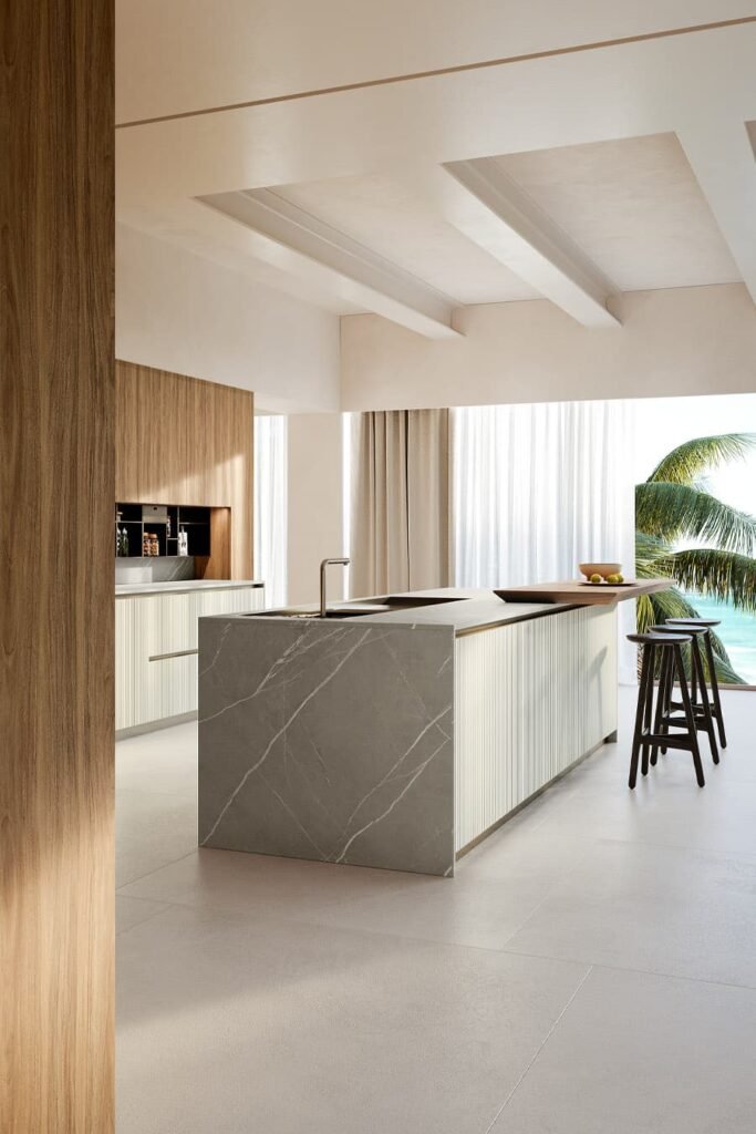 La porte Riga est le résultat d’un traitement articulé de l’épaisse couche superficielle de bois plaqué, pour obtenir une porte nervurée peinte aux couleurs de la collection Armony.